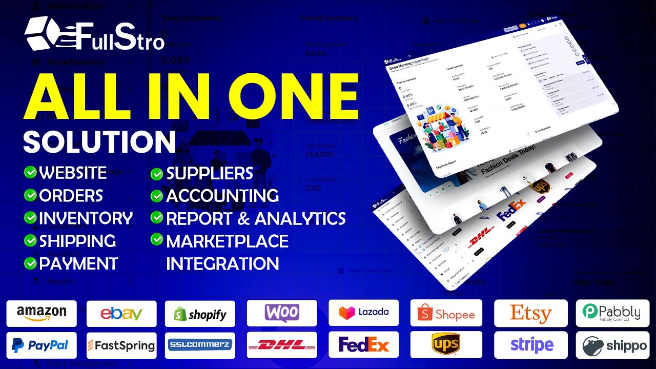 - Native integrations with major ecommerce platforms like Shopify, WooCommerce, Amazon, eBay, Lazada, and Shopee let you manage multiple stores from one FullStro account.